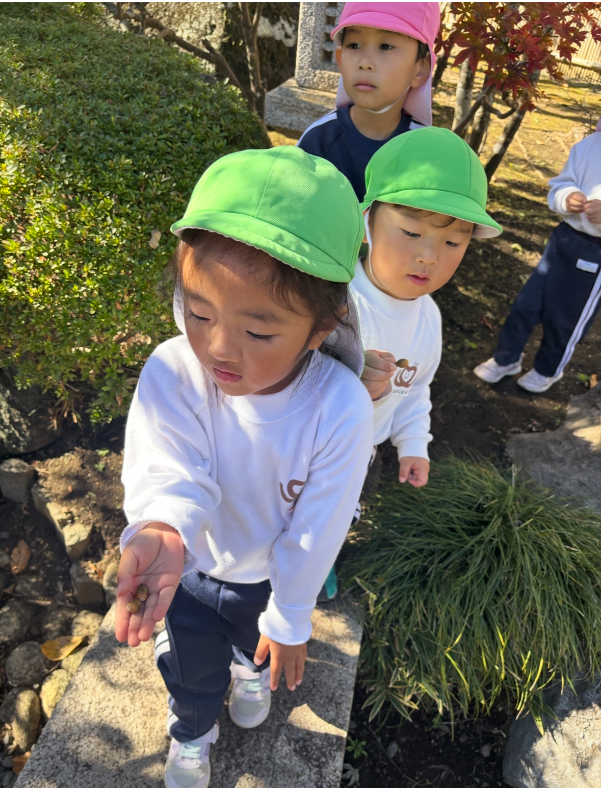 うめ お散歩 2025-11-21 最終更新日時 : 2025-11-21 postuser 今日は集会の後、うめさんはお散歩に行きました〜 行き先は...園長先生のお家のお庭! うめさんにお手紙が書いてあり、どんぐり探しやメダカを見たり色々見つけて楽しんだそうです🎵 園長先生からおやつのプレゼントもあり、嬉しそうに帰ってきました〜