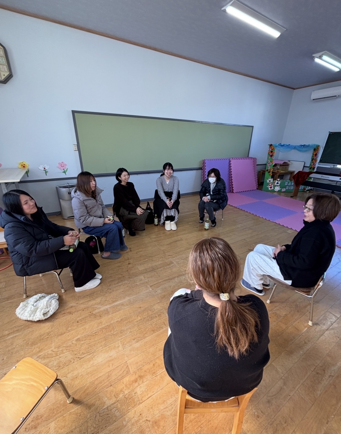 保育参観の後は、園長先生、あやこ先生、担任との座談会。色々な意見が飛び交い楽しい時間になったそうです。(さよ先生も途中から参加してくれました〜)