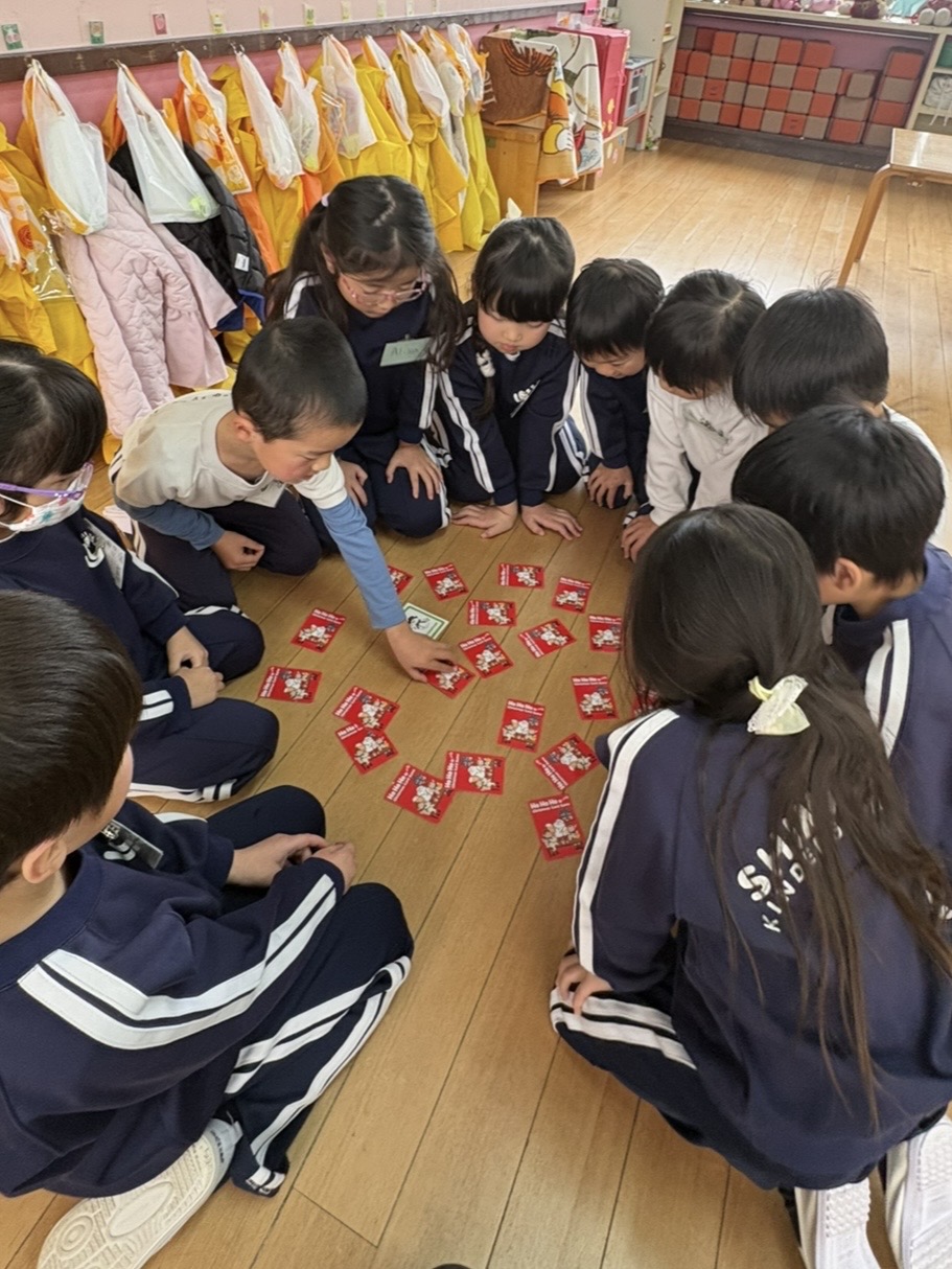 えいごあそび 2025-12-24 最終更新日時 : 2025-12-24 postuser 2学期最後のえいごあそび!! クリスマスの絵が描いてあるカードで 神経衰弱をしました! そして最後はエイミー先生から プレゼント!! かわいいオーナメントを頂きました! ありがとうございました!✨ merry christmas!