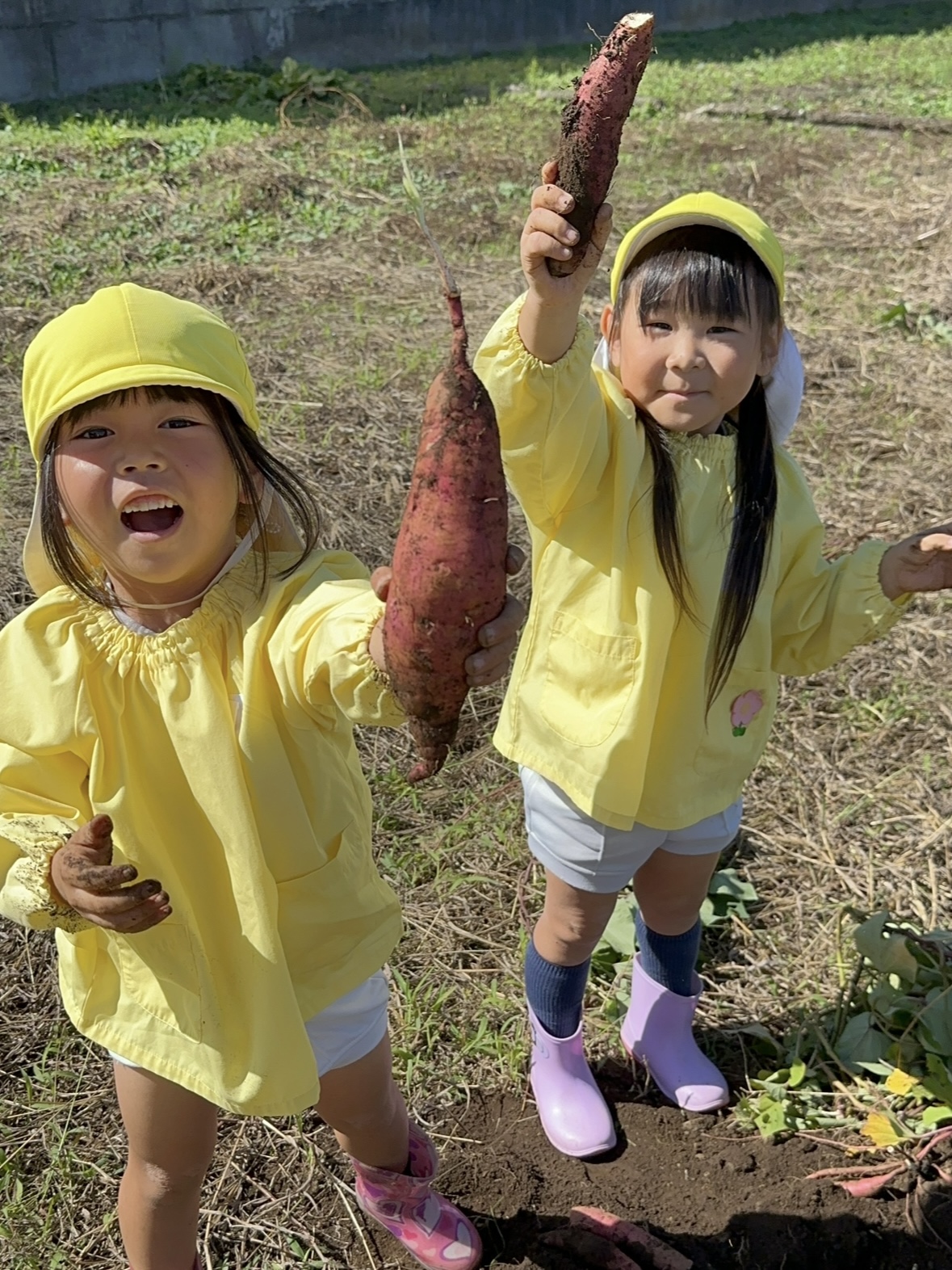 おいもほり 2025-10-17 最終更新日時 : 2025-10-17 postuser 今日はおいもほりをしました🍠 どんなお芋が掘れるかな〜 大きいのがいいな〜 とワクワク☺️しながら 畑に向かいました!! 牧野のおじちゃんにも手伝ってもらいました! 嬉しそうにお芋を掘っていました♪