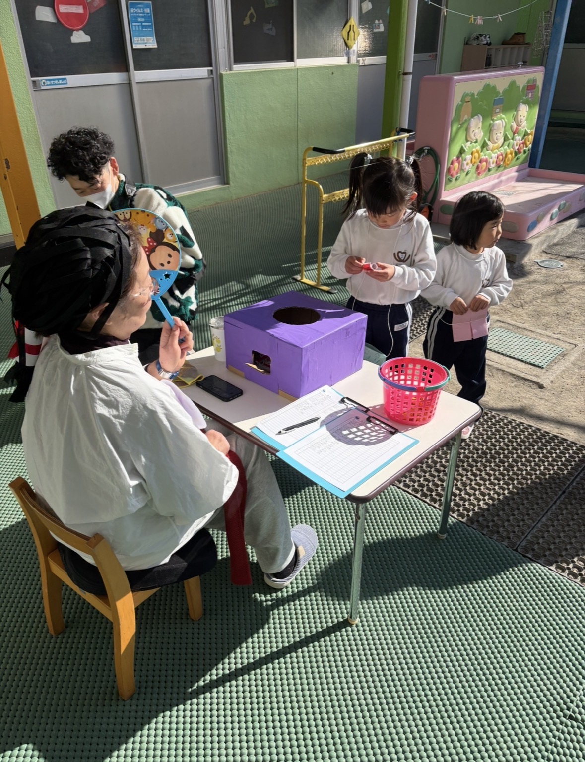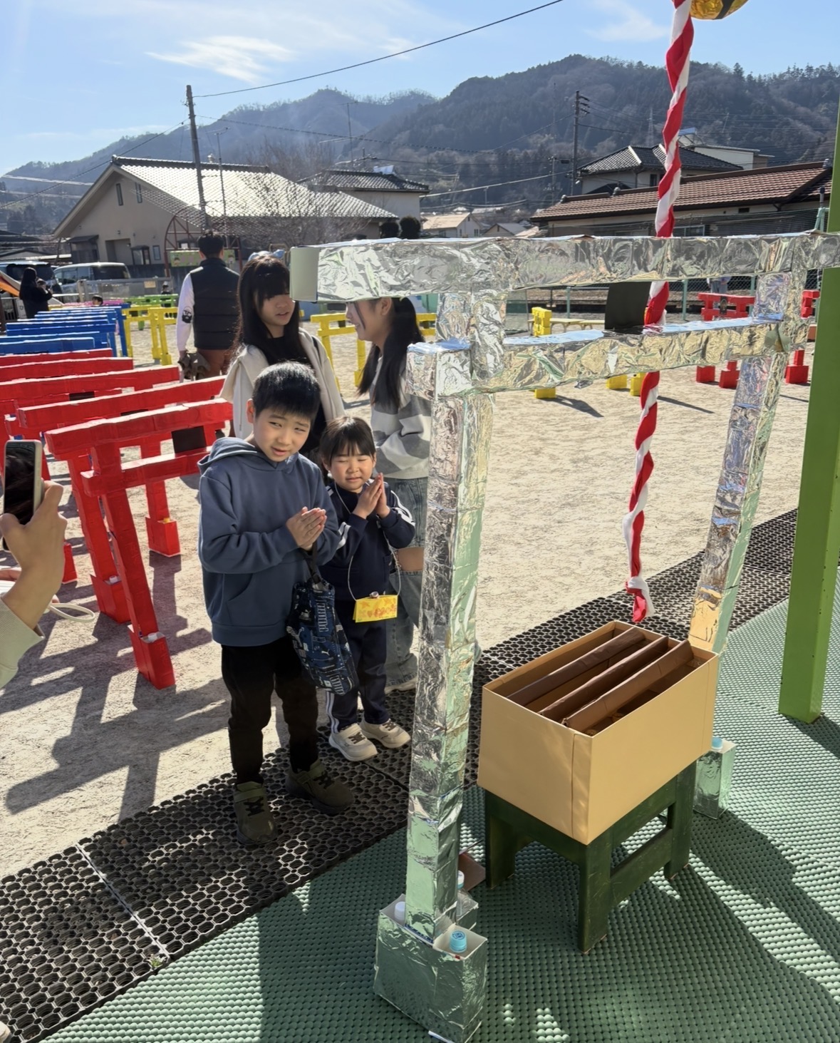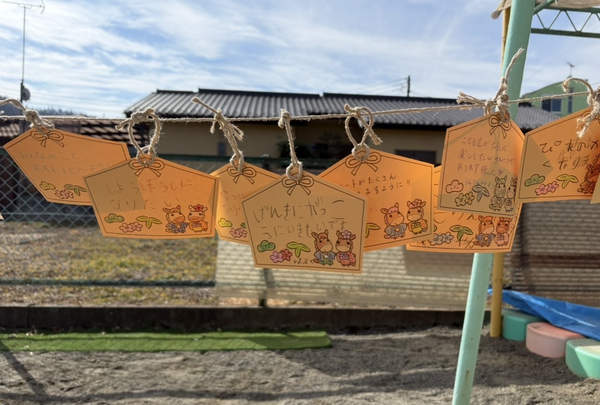 おもいで会② 2026-02-14 最終更新日時 : 2026-02-14 postuser 園庭には50基の鳥居が並び⛩くぐったり、お参りしたり絵馬を書いたり、巫女(みょこ)こさんのところではおみくじができたのでみんな楽しんでいましたね♪ 鳥居は、親子レクの際にお持ち帰りできますのでおうちに飾ってくださいね! 牛乳パック、ペットボトルの回収にご協力頂きありがとうございました。