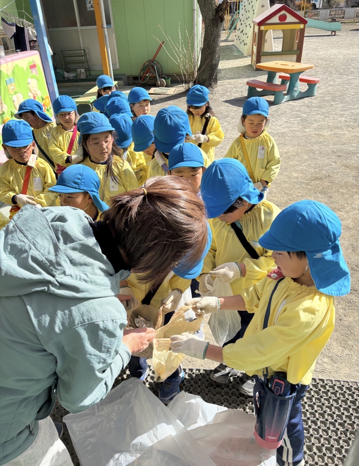 今日は縦割りで製作を行った後にさくらさんはお散歩へ。