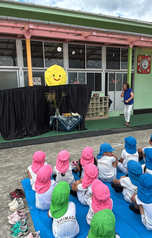 今日は十五夜 2025-10-06 最終更新日時 : 2025-10-06 postuser 今夜は十五夜という事で、みんなでお月見集会を行いました。 園長先生のお話を聞いた後、テラスに月が昇りました🌕 あやこ先生から松尾芭蕉の俳句を教わりました。 そして、みんなで月を見ながらお月見団子を食べました〜!(お団子は園長先生とさゆり先生の手作りです) ススキをお土産に持ち帰ります♪お家でもお月見して下さいね🌕