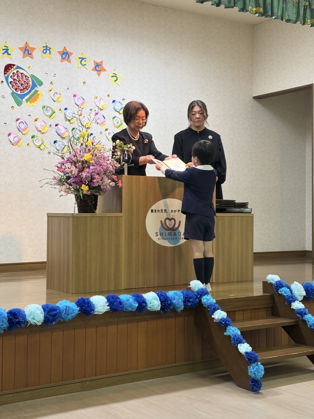 園長先生から一人一人修了証書をいただき、