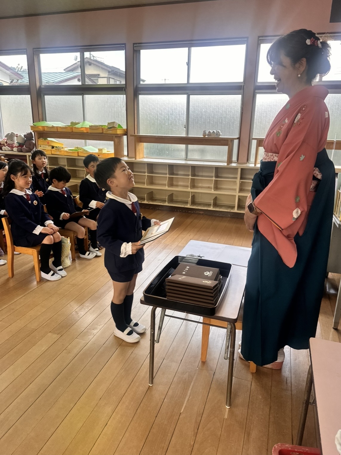 卒園式② 2026-03-19 最終更新日時 : 2026-03-19 postuser 式終了後は、記念写真を撮影したり 教室でみほ先生から証書や皆勤賞を受け取りました! 最後にみんなでイェーイ!とピース📷 元気いっぱいでかわいいさくらぐみのお友だち♡ 4月から小学生! 楽しい小学校生活を送ってくださいね〜! 保護者の皆様、今までご理解ご協力頂き ありがとうございました!