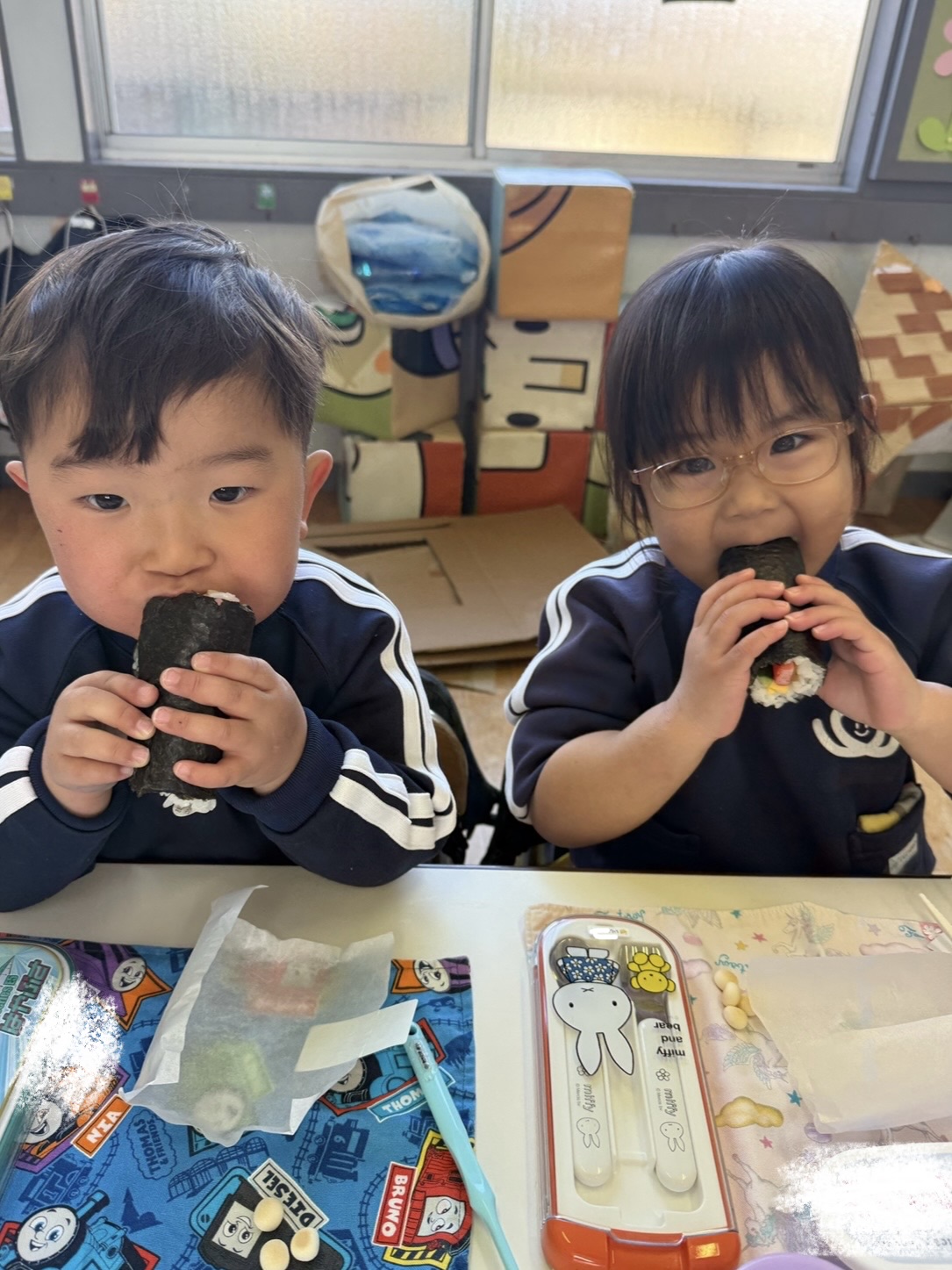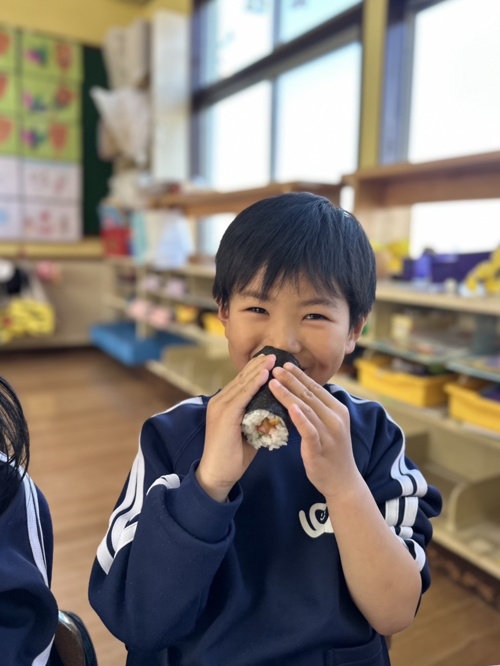 恵方巻 2026-02-02 最終更新日時 : 2026-02-02 postuser お昼はPTAの方が用意してくれた 恵方巻をいただきました😋 「♪恵方巻〜恵方巻〜うれしいな〜」と お弁当の歌を歌ったあと 南南東を向いて食べました! とってもおいしかったです! ありがとうございました!