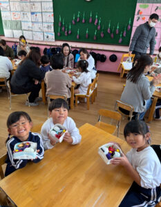 体育遊びの後はお部屋で製作『秋のお弁当作り🍱』の様子を見てもらいました。お弁当箱を作るお手伝いしてもらったりおにぎりを一緒に作ったりしてとっても美味しそうな秋のお弁当に仕上がりました! お忙しい中。ありがとうございました […]