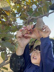 ももぐみは園長先生のお庭にある キウイフルーツを 収穫しに行きました🥝 ハサミでちょきん!! 収穫したキウイはりんごと一緒に 箱の中に入れます🍎 (りんごからエチレンガスが出て キウイが柔らかく、あまくなります) 「はや […]
