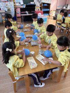 さくらぐみは、おもいで会に向けて 「はりこ作り」が始まりました!! ちぎった新聞紙を 水のりで風船に貼っていきます! これから毎日少しずつ取り組んでいきます! 何が完成するのか楽しみですね♪