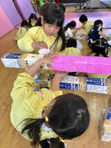 うめさんひよこさんはおもいで会に向けて、 みんなで協力して製作!! 各クラス少しずつ おもいで会に向けての活動も始まります! たてわりでの活動も明日からはじまります!