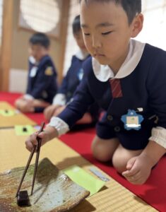 2回目のお茶会も最後のグループになりました。 いつもは食べられない羊羹も美味しく食べられたそうで、嬉しそうに教えてくれました。 来週、お茶会の絵を描きます!『園長先生を美人に描くんだ〜』とみんな言ってました😊