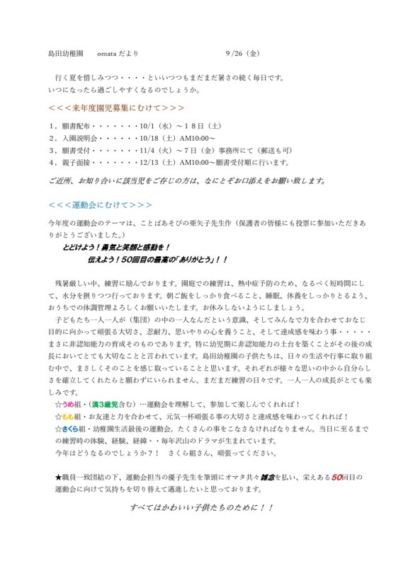 9月5日の保育について