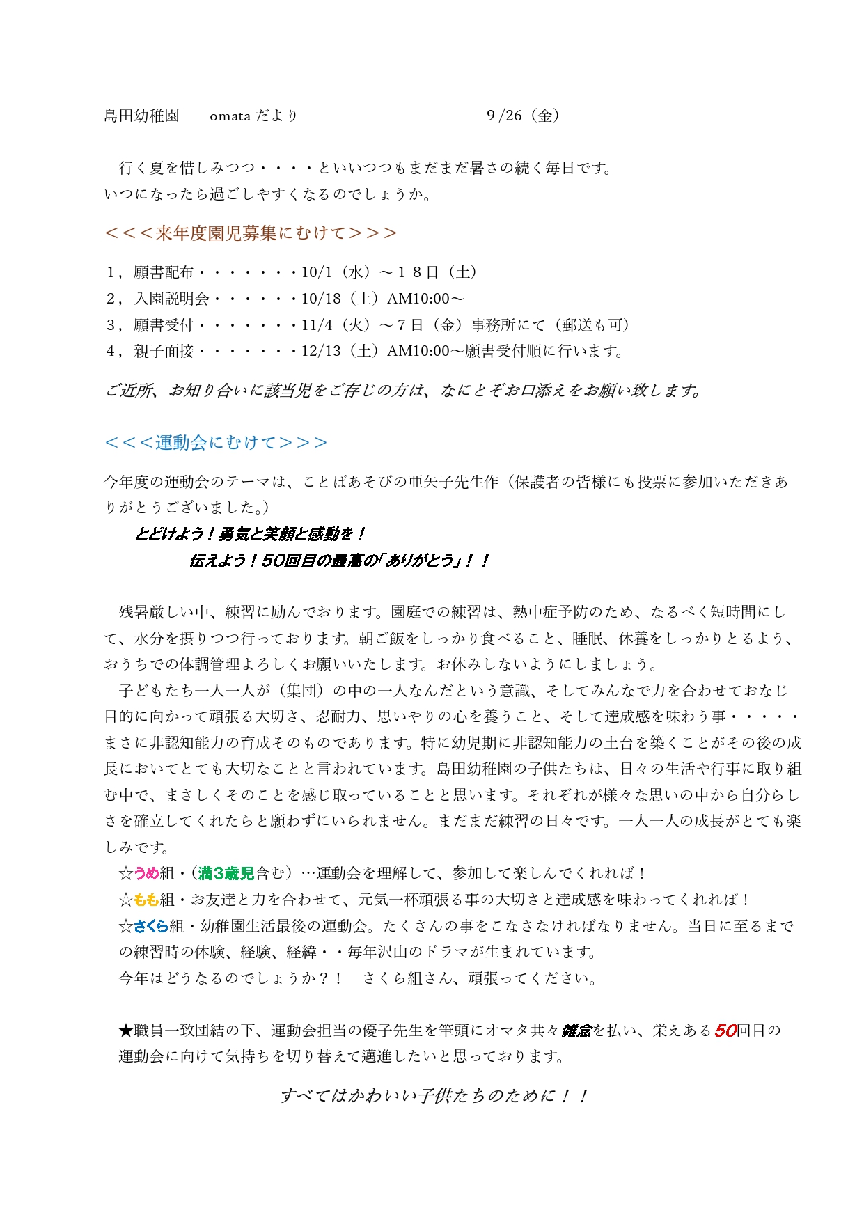 令和8年度 園児募集要項を掲載いたしました。
